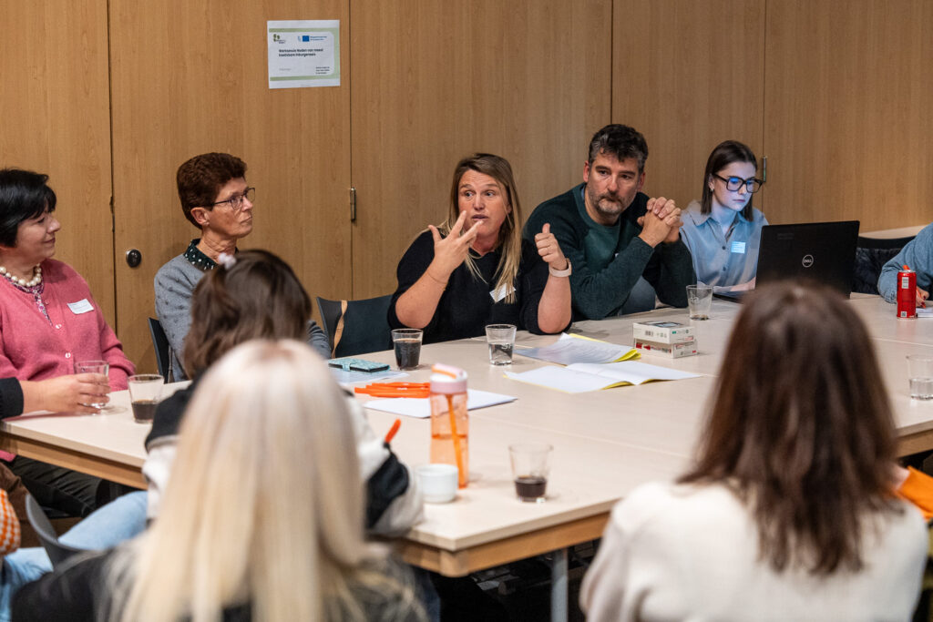 Links: Carolien Fuchs (Ligo Kempen) | Midden: Evelien Van Eynde (Welzijnszorg Kempen) | Rechts: V.l.n.r.: Evelien Van Eynde (Welzijnszorg Kempen), Julie Van Beurden (Welzijnszorg Kempen), Carolien Fuchs (Ligo Kempen) en Aleidis Devillé (Thomas More – Inclusive Diversity)